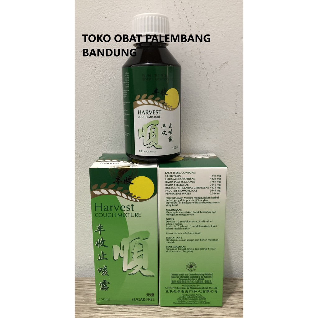 Harvest Cough Mixture SUGAR FREE Besar 150ml Obat Batuk FENG SHOU ZHI KE LU FENGSHOU ZHIKELU (Sumber : Shopee, Link : https://shopee.co.id/Harvest-Cough-Mixture-SUGAR-FREE-Besar-150ml-Obat-Batuk-FENG-SHOU-ZHI-KE-LU-FENGSHOU-ZHIKELU-i.64419511.1056545482)